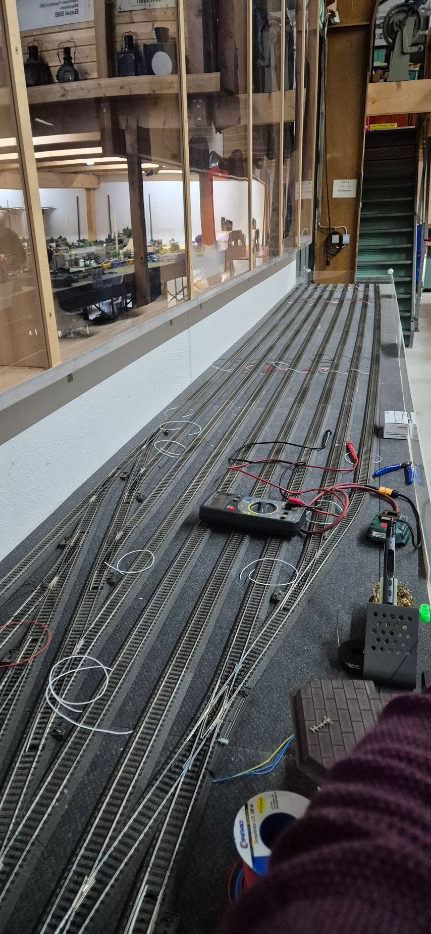 Der Bau unseres neuen Abstellbahnhofs geht voran, alle Gleise wurden nun mit Anschlüssen und Isolierungen versehen und sind damit für den Automatikbetrieb und die PC Steuerung vorbereitet. Als nächstes werden die Gleise ausgerichtet, Kabel durch die Grundplatte geführt und die Gleise sowie Zwischenräume gestaltet.